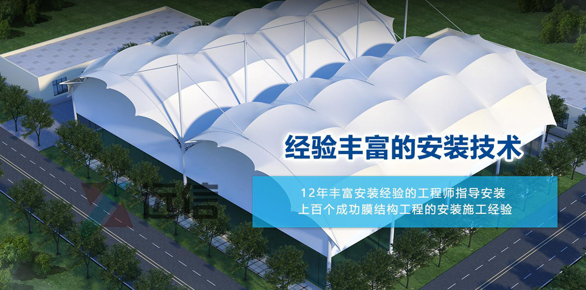 3.從結構設計上降低膜材安裝難度選用膜材均為國產(chǎn)或進口優(yōu)質(zhì)膜材料,高強拉力,優(yōu)質(zhì)抵抗老化涂層
